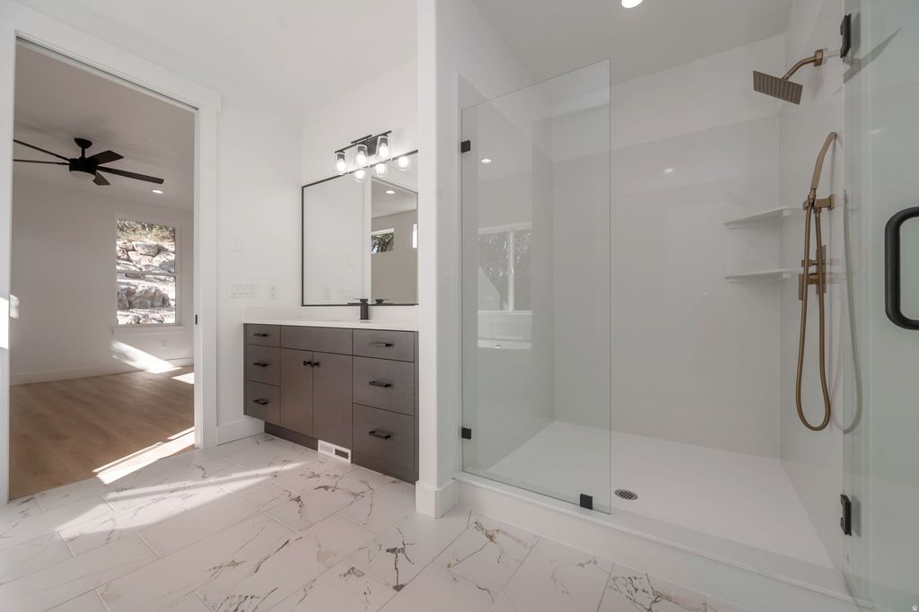 OpenHouse Saturday 3/21 from 12:00-2:00 PM. Modern Two Story Home Loaded with Upgrades! This stunning modern home in South Ogden offers a functional layout with stylish finishes throughout. The spacious Great Room flows seamlessly into the Kitchen, where a full window wall and sliding glass doors open to a beautiful outdoor patio-perfect for indoor/outdoor living and entertaining. Enjoy sleek, modern designs, upgraded kitchen finishes, and a large walk-in pantry. The main laundry room is conveniently connected to the mudroom just off the garage.The Master bedroom is a true retreat, featuring a separate tub and shower, plus in-suite laundry hookups located in the large walk-in closet. Downstairs, you'll find a second Primary-like suite with its own walk-in closet and private laundry hookups- ideal for guests or multi-generational living.The lower-level living room includes a kitchenette and two separate entries-one of which is a private entrance perfect for a home office/business or potentially an ADU. Additional highlights: 3-car garage with an extra-deep 3rd bay,RV parking along the side of the garage. Terraced backyard with a lovely patio space, Don't miss your chance to own this feature-rich, move-in-ready modern home!