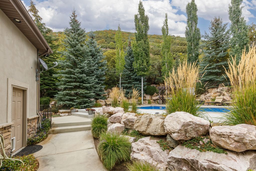 Here's your chance to own your own private mountain resort! Perched gracefully on 3.67 private acres along Layton's coveted East Bench, this extraordinary Estate offers a rare blend of refined craftsmanship, natural beauty, and resort-inspired living. Framed by sweeping, unobstructed vistas of the Wasatch Mountains, valley below, and shimmering Great Salt Lake, the setting is nothing short of breathtaking. A winding circular drive, bordered by curated stonework and artful landscaping, sets a grand tone upon arrival. The residence itself is a masterclass in design, where timeless materials and impeccable attention to detail converge. Inside, a dramatic foyer welcomes you with rich hardwood flooring, new carpet throughout, soaring ceilings with natural beams, and a striking floor-to-ceiling stone fireplace-creating an atmosphere both warm and sophisticated. The home's expansive layout is designed for both elegant entertaining and everyday comfort. A vaulted great room captures natural light through oversized picture windows, seamlessly connecting indoor living with the surrounding landscape. Multiple fireplaces throughout the home add depth and ambiance, while custom millwork, solid alder doors, and refined finishes underscore the home's elevated character. At the heart of the home, the gourmet kitchen is thoughtfully appointed for culinary excellence, featuring premium appliances, double ovens, a warming drawer, and an oversized granite island ideal for gathering. A butler's pantry with additional cooling drawers enhances both functionality and style, while a nearby wet bar-complete with beverage fridge and custom cabinetry-creates the perfect setting for hosting. The primary suite is a serene retreat, offering a private sanctuary with its own fireplace, spa-inspired bath with heated floors, soaking tub, dual vanities, and a spacious walk-in closet. Direct access to an outdoor hot tub invites relaxation beneath the stars. Additional spaces include a beautifully appointed home office with private entrance, formal and informal dining areas, and a thoughtfully designed mudroom and laundry area. The lower level continues the home's entertaining focus with a large gathering space, fireplace, game area, and a full bar with wine cellar -perfect for hosting on any scale. Outdoors, the estate transforms into a private resort. A heated in-ground pool with automatic cover anchors the backyard, complemented by a pool house featuring a kitchenette and changing facilities. Expansive covered patios, fire features, and multiple seating areas provide year-round enjoyment in a setting designed for both relaxation and celebration. Car enthusiasts and hobbyists will appreciate the oversized 3-car garage with additional toy storage, while modern conveniences such as a whole-home generator, tankless water heating, and advanced air systems ensure comfort and efficiency. Bordering protected land, this property offers exceptional privacy while still being moments from city amenities! You are only 20 minutes from a world renowned ski resort, and 25 minutes to Pineview reservoir. Want more, there are hiking and biking trails just a few hundred yards from your driveway, -This estate creates a lifestyle that is as tranquil yet convenient.