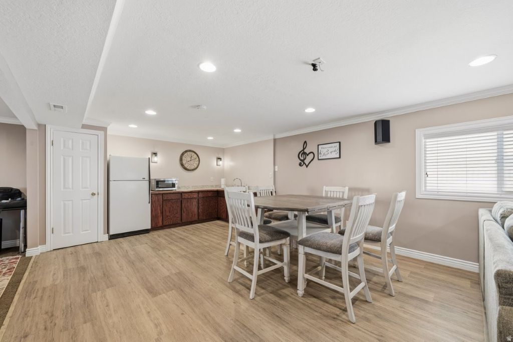 RARE Horse Property + MASSIVE SHOP in Meadow Park! If you've been looking for space, functionality, and versatility, this is it! Situated on .67 acres, this Clearfield rambler offers horse property, 2 barns, and an incredible 48x30 shop with power & pit, perfect for hobbies, business, or all your toys. Inside, you'll find an open, updated kitchen with stainless steel appliances, a cozy coffee bar, and a large dining area designed for gathering. Durable LVP flooring, main floor laundry, and included washer, dryer, and refrigerator make this home truly move-in ready. The primary suite features a walk-in closet, while the fully finished basement includes a spacious family room and kitchenette, ideal for entertaining or multi-generational living. Enjoy added comfort and efficiency with A/C, Quiet Cool fan system, and solar panels. Step outside to your own private retreat: Fully fenced yard with full sprinkler system, Covered Trex deck + 22x25 patio for outdoor living. Room for animals, equipment, and more! Conveniently located near Hill Air Force Base with easy access to I-15, shopping, and parks. **There is an additional 1.32 Acres of land that can be leased from the power company.