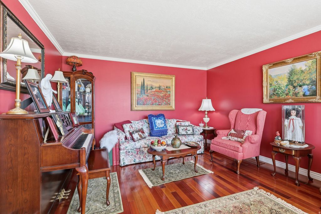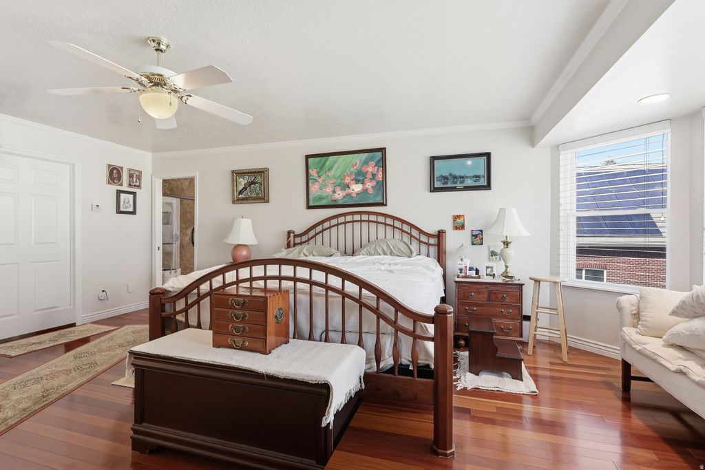 Nestled in the coveted foothills of Farmington's East Bench, this distinguished all-brick estate offers refined living in the serene Somerset community. Set on a generous half-acre lot, the property captures sweeping views of both the valley and the stunning Wasatch Front. Designed with both elegance and functionality in mind, the home features rich hardwood flooring, custom wood cabinetry, and a thoughtfully designed layout ideal for everyday living and entertaining. The gourmet kitchen is appointed with granite countertops, a large center island, and abundant space for both cooking and gathering. Just off the kitchen, a warm and inviting family room provides the perfect setting for entertaining or relaxing in comfort. Upstairs, the spacious primary suite serves as a private retreat, complete with a sitting room or library, spa-like ensuite bath with a large walk-in shower, and breathtaking mountain views. Car enthusiasts and hobbyists will appreciate the attached oversized three-car garage, as well as a second detached oversized garage with a substantial loft-offering endless possibilities for storage, a workshop, or additional living space. Additional highlights include a durable Bartile roof, solar panels for energy efficiency, and a convenient back-entry mudroom with adjacent laundry and bath..