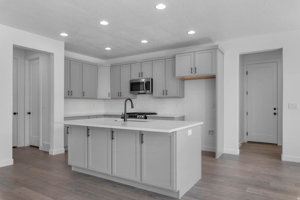 Stunning modern farmhouse designed for both comfort and style! This home features an expanded great room and high-end finishes throughout. The gourmet kitchen showcases gray laminate cabinetry, elegant quartz countertops, a tile backsplash, and upgraded platinum gas appliances-perfect for entertaining and everyday living. A charming box window brightens the kitchen nook with natural light. The spacious open-concept layout is complemented by a blend of laminate hardwood, tile, and carpet flooring. Can lighting and convenient Christmas light outlets enhance both functionality and ambiance. The expansive great room centers around a cozy gas log fireplace, creating the perfect gathering space. A dedicated office with a glass door offers privacy while maintaining a light, airy feel-ideal for working from home. Upstairs, the grand bathroom features beautiful quartz surrounds, delivering a spa-like experience along with a game room for lots of space to relax and entertain. Additional upgrades include black matte hardware, a sleek metal stair railing, and craftsman-style baseboards and casing throughout. Enjoy energy efficiency with a tankless water heater and the practicality of a 3-car garage with keypad entry and an exterior exit door. This exceptional home combines beautiful upgrades, thoughtful design, and timeless farmhouse appeal.
