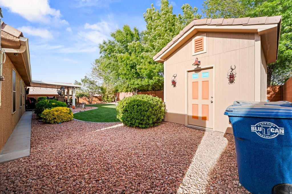 Charming single-level home with RV parking & full hookups in a quiet, well-kept neighborhood! This 3 bed, 2 bath, 1,283 sq ft home features an open layout with vaulted ceilings and abundant natural light. The living area flows into the kitchen and dining space, with easy access to a covered patio-perfect for indoor/outdoor living. Enjoy a beautifully maintained yard with mature landscaping, a covered patio, and a storage shed. Gated RV parking with hookups adds flexibility and value. Functional floor plan with a bright primary suite and a 2-car garage with extra storage. Convenient location with great views-clean, move-in ready, and priced to impress.
