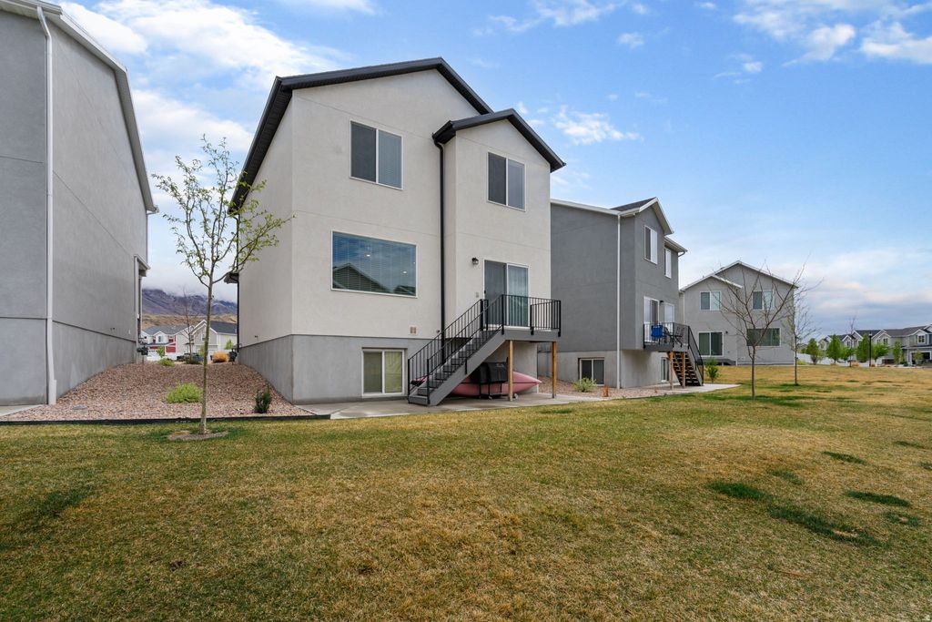 Pride of Ownership! This beautiful home is so clean and taken care of! You will love the beautiful fireplace wall and nice touches throughout. The carpet is spotless and the backyard play area is fun for all family members. Located on the east bench of the community, you'll enjoy gorgeous views of the mountains. Built with the desirable white Craftsman elevation, this home features a spacious family, dining, kitchen and a half bath on the main, complete with stainless steel appliances and a gas stove. Upstairs you'll find the main bedroom with a full bathroom and walk in closet, 3 bedrooms, a spacious loft, and a conveniently located laundry room. Buyer/Broker to verify square footage.