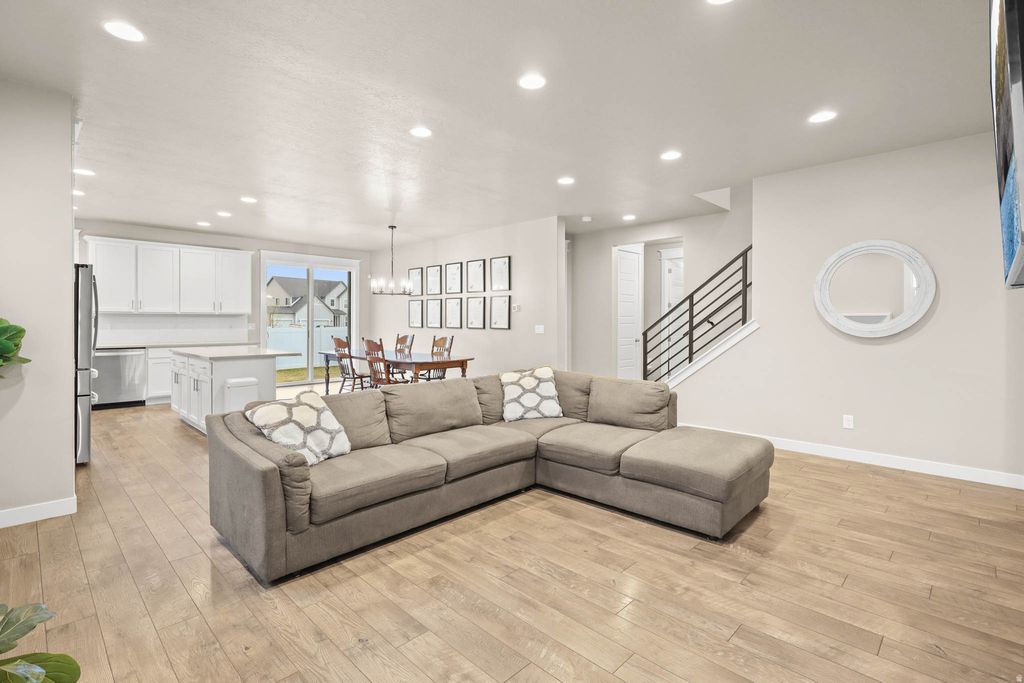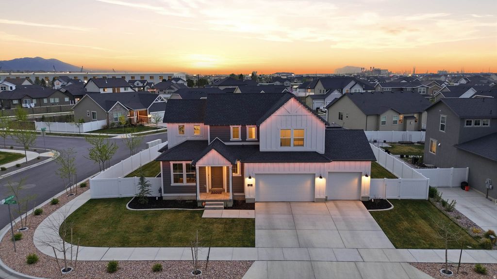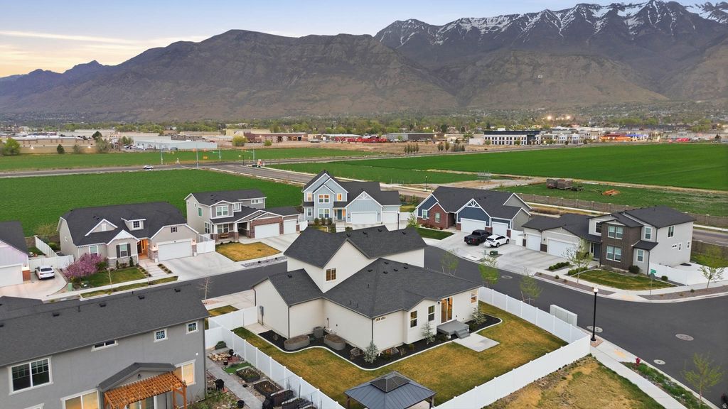 This pristine Lindon residence stands apart through its intentional design and a suite of high-end, custom upgrades. The interior is defined by sophisticated craftsmanship, highlighted by a dedicated built-in executive office and expanded custom cabinetry in the laundry suite. The home's immaculate, move-in-ready condition is preserved by a consistent weekly professional cleaning service. The exterior features a permanent Jellyfish lighting system for year-round curb appeal, while the interior atmosphere is easily controlled by Hunter Douglas motorized shades. Even the garage has been elevated with a durable tuxedo epoxy floor, leading out to professional landscaping and raised garden beds. Located in a premier neighborhood, this property offers a refined, turn-key lifestyle where every detail has already been considered. Square footage figures are provided as a courtesy estimate only and were obtained from the builder's 2021 floor plan. Buyer is advised to obtain an independent measurement. The Seller is a Real Estate Agent.