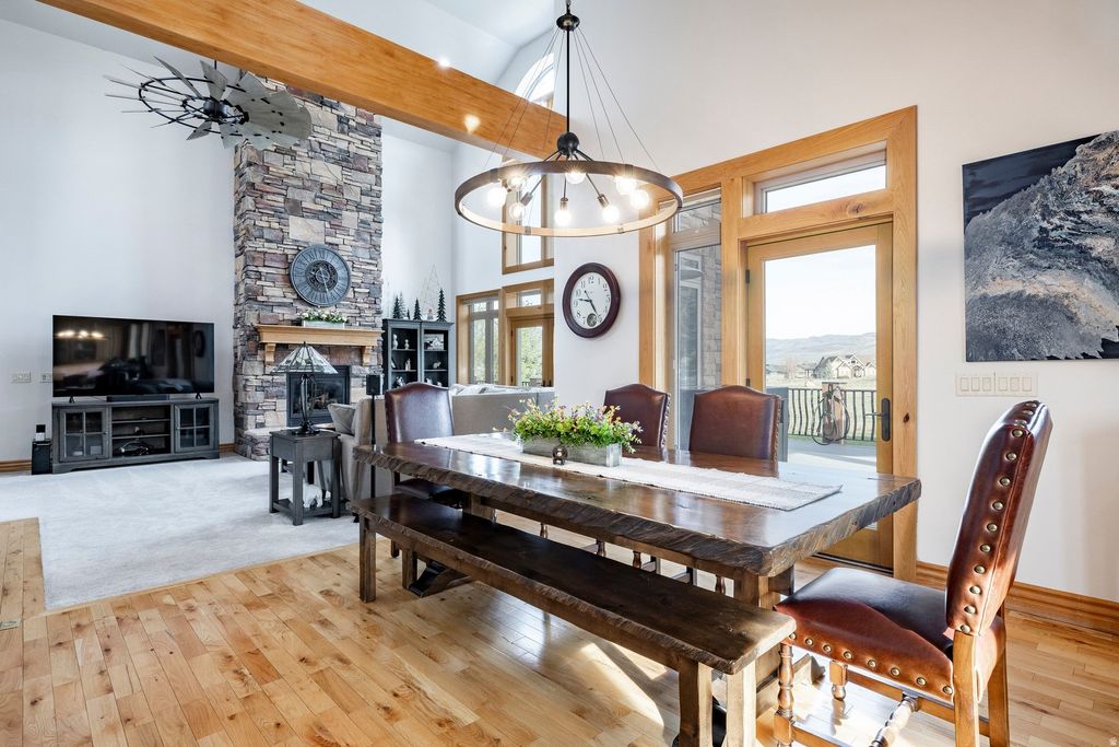 Nestled in picturesque Eden, this exquisite custom-built home offers breathtaking 360-degree views of Ben Lomond Mountain Range and Nordic Valley. Located in the desirable Eagle Ridge neighborhood just below Powder Mountain, this property provides unbeatable access to year-round recreation-just 7 miles to Powder Mountain, 15 minutes to Snowbasin and North Fork Park, and 5 minutes to Pineview Reservoir and Nordic Valley. Enjoy nearby hiking trails, local shops, restaurants, and preserved open space with abundant wildlife. Designed with both comfort and entertaining in mind, the home features an expansive outdoor deck that spans the entire back of the home, perfectly positioned to capture the surrounding mountain and valley views. The beautifully landscaped backyard includes a firepit and hot tub, creating a private and relaxing outdoor retreat. Inside, the main level offers an open-concept layout highlighted by soaring 24-foot ceilings, exposed timber beams, and abundant natural light. This 5 bedroom, 3.5 bathroom home has a spacious primary suite featuring vaulted ceilings, new windows, a primary suite spa bath with radiant heated floors, freestanding stone tub, marble shower, heated towel rack and quartz dual vanity as well as direct access to a deck overlooking the backyard. Additional features include two living areas, laundry on both levels, basment kitchenette, office/den space, heated garage with epoxy floor, and a central vac. Extensive upgrades provide modern convenience and peace of mind, including smart home automation, a Generac whole-home generator, tankless water heater, designer finishes, and a beautifully landscaped backyard. This property presents a rare opportunity to enjoy refined mountain living with stunning views, thoughtful design, and close proximity to world-class outdoor recreation. Make sure to take the time to click on the TOUR button and watch the video and see the 3-D Matterport tour of the home. Square footage figures are provided as a courtesy estimate only and were obtained from previous appraisal. Buyer is advised to obtain an independent measurement.