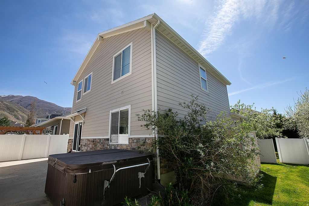 Experience modern living in this beautifully finished two-story home, ideally located in the heart of Fruit Heights. Thoughtfully designed for comfort and versatility, this home features two primary suites, offering flexibility for multi-generational living, guests, or added privacy. The fully finished layout provides spacious, functional living areas perfect for entertaining. Step outside to enjoy a private outdoor retreat, complete with a patio and hot tub. Situated on a quiet dead-end street, this home offers an added sense of privacy and minimal traffic. Quick access to I-80, making commuting a breeze. You're just minutes from shopping, dining, and entertainment at Station Park, featuring a variety of restaurants, coffee shops, a movie theater, retail stores, and fitness centers. University of Utah Farmington Health Center, just a short drive away. This home truly combines modern design, prime location, and everyday convenience!