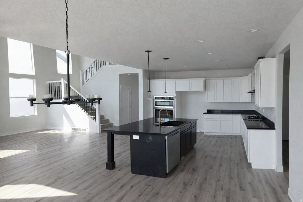 Clean, modern, and move-in ready-this 4-bed, 2.5-bath Saratoga Springs home offers an open-concept layout with a bright kitchen featuring white cabinetry, sleek counters, and a large island. Sun-filled living spaces with oversized windows, plus a versatile upstairs loft and spacious bedrooms. Primary suite includes a walk-in closet. Neutral finishes throughout. Attached 2-car garage. Near Utah Lake, Inlet Park, Jordan River Trail, and shopping at The Crossing.
