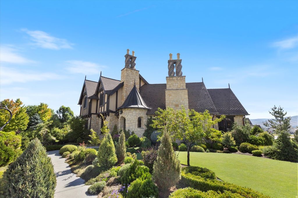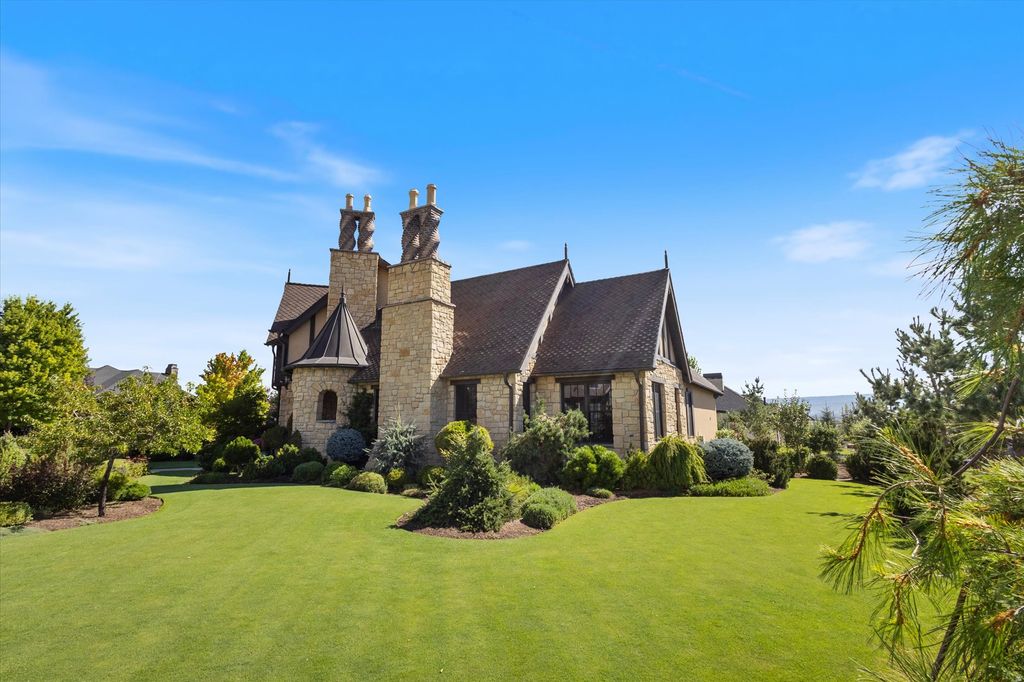 Nestled in the coveted Cascades at Soldier Hollow in Midway, Utah, this extraordinary residence showcases timeless Normandy-inspired architecture paired with exceptional craftsmanship throughout. A striking copper turret roof, along with matching gutters and downspouts, sets the tone for the home's distinctive character, complemented by full bed stone construction and beautifully twisted brick chimneys. Inside, every detail has been thoughtfully curated, from the hand-carved Venetian plaster entry to the four stunning masonry fireplaces that add warmth and elegance throughout. The gourmet kitchen is a chef's dream, featuring premium Thermador appliances, twin dishwashers, and exquisite Rohl fixtures. In this cozy cottage authenticity and artistry shine with handmade clay tile imported from England and a classic clawfoot tub that enhances the home's refined charm. Every element of this residence has been custom designed, creating a one-of-a-kind living experience that blends luxury, comfort, and architectural beauty. This is truly luxury living at its finest in one of Midway's most sought-after communities.