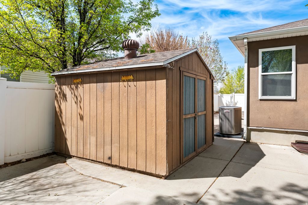 Welcome to your AWESOME 5 bed / 3 bath, fully finished RAMBLER in this beautifully established neighborhood: Wheatridge Estates in West Jordan! Arrive to plenty of parking space + a 47' fenced RV pad, well-landscaped yard and cozy front porch seating. Inside, your new home has a spacious eat-in kitchen w/ island seating, granite countertops, gas range, stainless steel appliances, tile backsplash and pantry. The main level has LVP flooring and carpet, custom paint and accent walls. The primary suite has south-facing windows and a relaxing bath with oversized tub/shower and double sinks. Downstairs, you'll enjoy a fully finished basement with 2 bedrooms, 1 bath, XL cold storage room w/ freezer, a fitness area that could be a wet bar (potential for a mini kitchen), plus a big playroom that was formerly a theater room (projector is included)! Enjoy privacy in the backyard; nestled in a large south-facing covered patio for lounging and BBQ dinners. The hot tub pad is wired. Full sprinklers + tiered garden beds! Shed is included! Owner has upgraded HVAC and roof! Quiet neighborhood. SHOWS REALLY WELL!