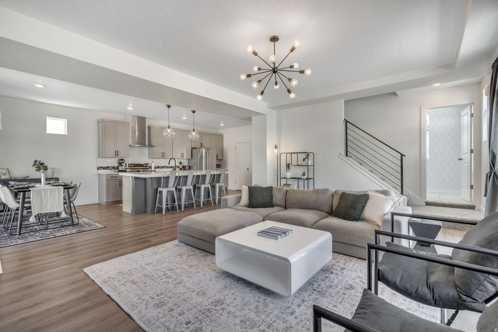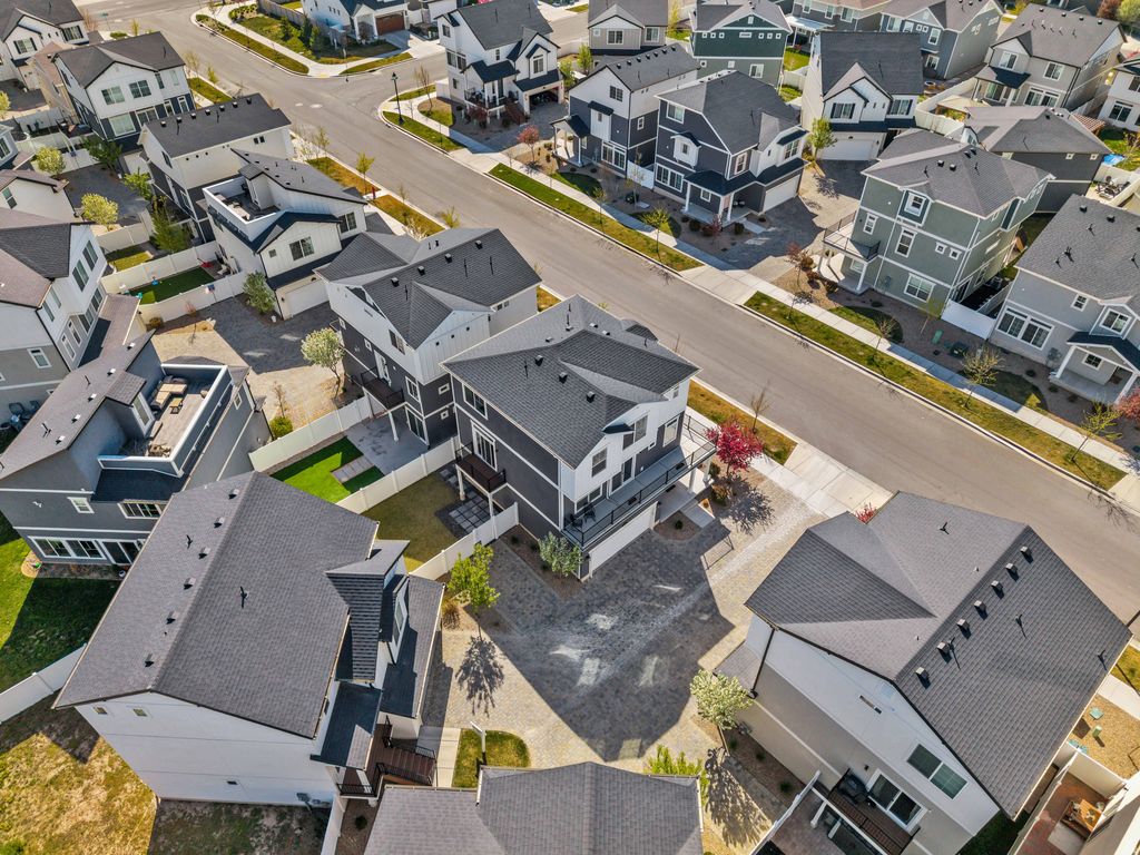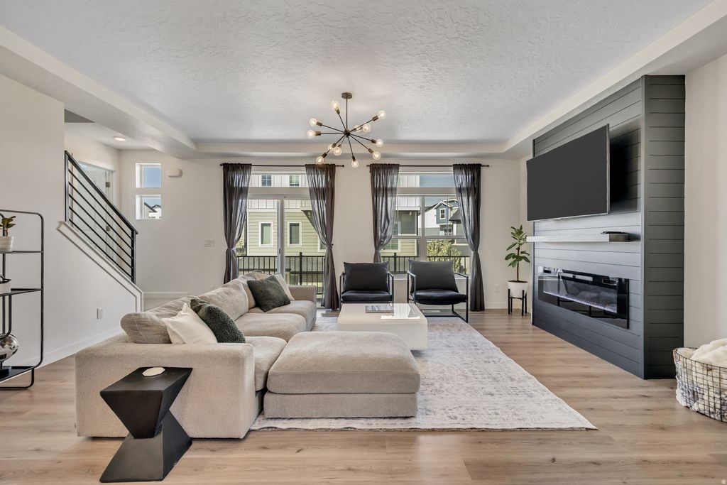 If you've been searching for a home that's easy to love, this is it. Welcome to a stunning residence where modern design meets low-maintenance living and exciting community amenities. With over 2,200 sq. ft., this home offers a bright, open layout and a spacious kitchen designed for both everyday living and effortless entertaining. Enjoy a massive island with a thick mitered edge, quartz countertops, a walk-in pantry, a stainless steel hood, an upgraded sink, and thoughtful touches like soft-close cabinets and a pull-out built-in garbage can cabinet. The home features durable LVP flooring, a beautiful statement fireplace, transom windows, and a generous living and dining space that flows out to the wraparound deck. Upstairs, the primary suite includes a walk-in closet, double sinks, dual shower heads, and a private water closet. Additional highlights include a dedicated office space ideal for remote work and a lower-level flex space that walks out to the covered patio and fully fenced yard with finished sod and beautiful mountain views. You'll feel the difference this home offers on every level. The home is close to neighborhood trails, parks, and the community pool. Located in the highly sought-after Wander community, the HOA covers driveway snow removal and community amenities, giving you more time to enjoy life and less time on maintenance. Conveniently close to shopping, dining, and commuter routes, this home delivers an ideal blend of comfort, convenience, and modern living. The owners invested over $54,000 in upgrades when they built in 2021-and it shows. Come see why this is the best home in the neighborhood.
