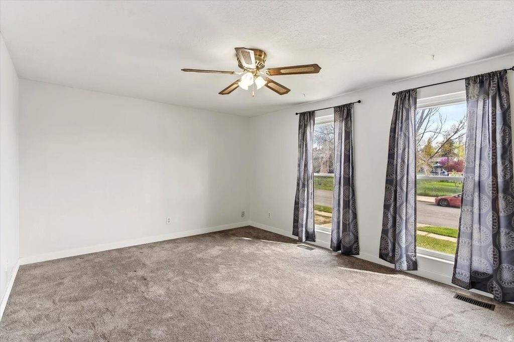 ** CORNER LOT, FULLY FENCED, ON QUIET STREET ** Large family room perfect for entertaining. Extra cabinets in the kitchen and dining area. 2 large bedrooms and 1 bathroom upstairs. Basement fully finished with a family room, a den area, 2 bedrooms, and 1/2 bath. Laundry in the basement. Also has a walkout basement to the backyard. Just off the kitchen, there are French doors leading to a large deck. Mature trees and a large yard. Fully fenced backyard. The 2-car carport is easy to enclose to make it an oversized garage. Also has plenty of RV parking. Solar panels installed in 2021 and are fully paid off. All windows and the front door were fully replaced in 2023. Square footage figures are provided as a courtesy estimate only and were obtained from a previous MLS listing. Buyer is advised to obtain an independent measurement. Agent is related to the seller. Property Website: https://view.reelmediautah.com/954-W-2400-N