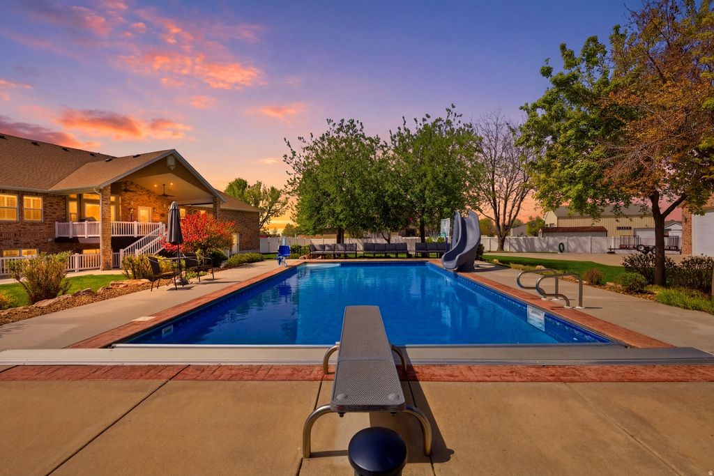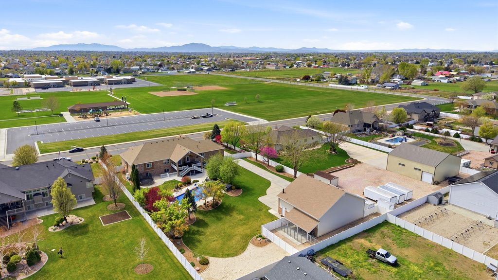 As you pull up in front of the house you notice the beautiful colors blossoming in the beautifully designed yard. You also notice the large park across the street. You continue up the wide stairs to the front door and enter the welcoming entry of your next Home! This well kept Home has so much to offer whether you are looking for a great place for multigenerational living or your own getaway from the world. The open Kitchen, great room, primary suite and office areas were redone in 2020 along with the HVAC systems, water heaters and the roof on the house and shop! The upstairs kitchen has Maple Cabinets, double wall ovens, countertop stove with decorative hood, 2-tier island with suspended chairs and an 18' vaulted ceiling. Another added convenience is the floor receptacles for the central vacuum system. The large primary Suite features a double door entry, trey ceiling with ambient lighting, walkout to the covered deck, 2 way fireplace, separate tub and shower, double vanity and large walk-in closet. The laundry room is set up for 2 dryers if needed. The basement aside from the 4 bedrooms, 1 full bathroom and full kitchen also has a theater, laundry hookups, storage room and walkout to the backyard. Could easily be a Mother-In-Law apartment. Now things are getting even more exciting! The backyard is where you find the 20x40 heated in-ground salt water pool with a diving board, slide, plenty of seating and privacy with thoughtful placement of trees. You still have plenty of grass space for activities and you can't miss the large detached garage. The garage is 50x40 with 2, 12' doors, is heated, has it's own water heater, laundry area, a 3/4 bathroom, workbench and 3 indoor/outdoor dog runs. Each garage has a 220 outlet for tools or EV charging. The long driveway to the back shop allows for lots of parking for RV's and toys and you even have sewer access for emptying the RV after a fun trip. No need to go find one and wait in line. This is truly one you have to see in person a few times and you will still miss some of the great features. So much thought has gone into functionality both inside and out! Make your appointment as soon as you can because this is one you do not want to miss! Square footage figures are provided as a courtesy estimate only and were obtained from County records. Buyer is advised to obtain an independent measurement.