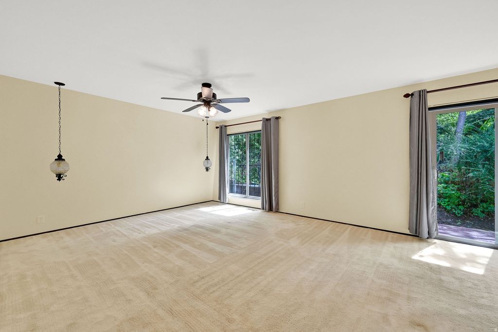Ahhh - delightful Fruit Heights! Welcome home to this charming and well-maintained single family bi-level, nestled into a private wooded hillside (no backyard neighbors). The spacious kitchen and living area are flooded with light thanks to the many oversize windows and sliders. Wrap around deck allows for seamless indoor/outdoor living. Roomy kitchen with ample storage and room for multiple cooks and holiday gatherings. Recent upgrades to bathrooms. Daylight lower level with a cool, retro-vibe wet bar. Two cozy gas fireplaces. Original mid-mod touches throughout provide character and charm. New Sprinkler controls. One share for secondary water. RV parking on west side. Fiber available. Seller is offering a 1 year home warranty with purchase. Main floor square footage figures are provided as a courtesy estimate only and were obtained from County Records . Buyer is advised to obtain an independent measurement.