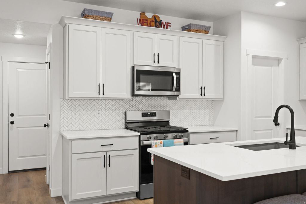 *** PERFECT CONDITION *** Almost brand new, south facing, corner lot. Spacious open main floor with gorgeous kitchen, custom backsplash, walk in pantry, quartz countertops, and walk in pantry. Lots of natural light. 1/2 bath and mudroom on the main floor. Upstairs has a master suite with vaulted ceilings, double sinks, separate tub & shower, and walk in closet. 2 more bedrooms, 1 more bath, and laundry upstairs. Basement is unfinished. Fully fenced backyard with concrete patio. Mountain views, and the perfect spot for 4th of July firework watching.