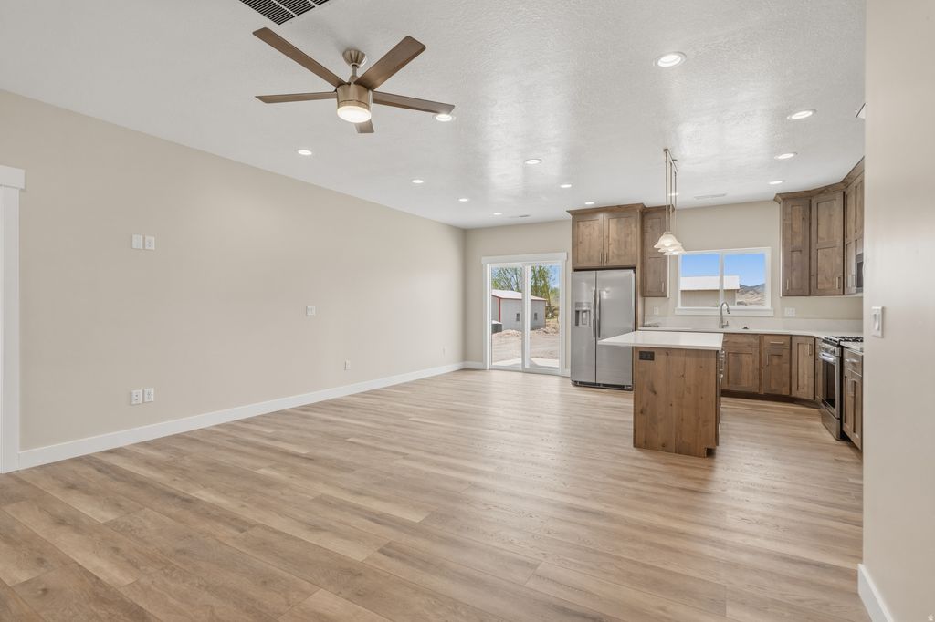 Welcome to 157 W 100 S Joseph, a stunning brand-new single-level home nestled in the peaceful charm of Joseph, Utah. Situated on a spacious 0.51-acre lot along a quiet road, this thoughtfully designed property offers the perfect blend of modern comfort and country living. Featuring 4 bedrooms and 2 bathrooms, this home showcases an open, functional floor plan with elegant finishes throughout. The stylish kitchen is a standout feature, complete with a unique hidden walk-in pantry that adds both convenience and character. Enjoy seamless indoor-outdoor living with a covered patio-perfect for relaxing or entertaining while taking in the surrounding views. Additional highlights include a 2-car garage and a shared driveway designed for easy access and smooth entry and exit. Outdoor enthusiasts will appreciate the prime location-just minutes from biking and walking paths, along with endless access to mountain trails, hunting, and fishing opportunities. This home shares the same thoughtfully designed floor plan as the neighboring property, offering a mirrored layout with a different color scheme-ideal for buyers looking for similar design with personalized style. Don't miss your opportunity to own a beautiful new home in a quiet, sought-after setting with unbeatable access to Utah's great outdoors.