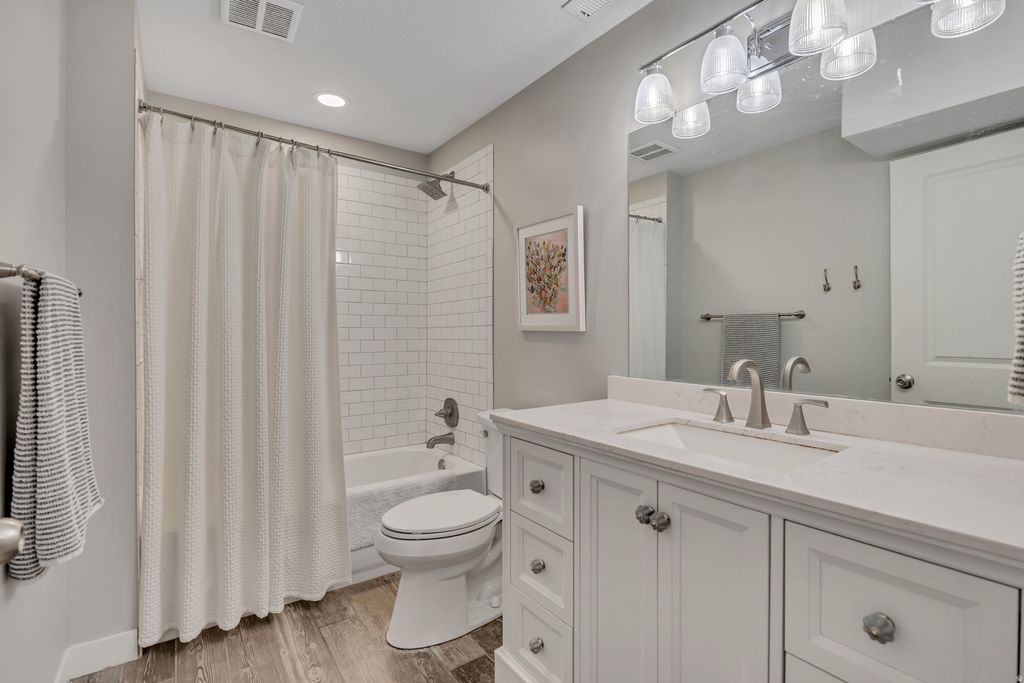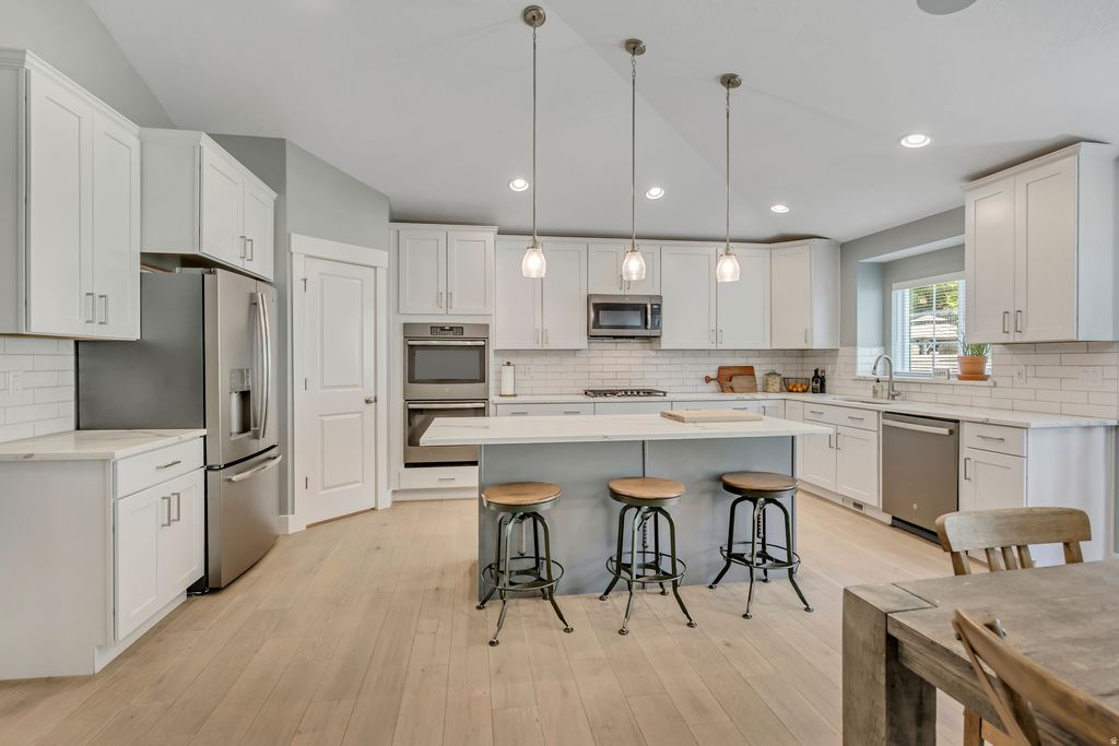 **OPEN HOUSE SATURDAY, APRIL 18TH 10-12PM** Beautiful Custom Rambler in a GREAT Location! Highly Sought After Neighborhood Boasts Panoramic View of the Mountains and Valley!! This Home is IMMACULATE and only a few years old. Home Features MANY UPGRADES: Grand Kitchen with Quartz Countertops, Double Oven, Gas Stove, Built-in Speakers in Kitchen, Vaulted Ceilings, Gorgeous Flooring, Large Master Suite with Spacious Walk-in Closet, Office/Formal Living room with Privacy Barn Doors. **EXTRA WIDE GARAGE with space for workbench and RV PARKING WITH PRIVACY GATE** Enjoy playing games and watching movies in the EXPANSIVE Family/Rec Room! You will love entertaining in the Large and Gorgeously Landscaped Backyard with a paved patio covered by a gazebo! Located in Brentwood Estates, a Quiet and Upscale Neighborhood, only a few minutes from I-15, Shopping & Lagoon Amusement Park.